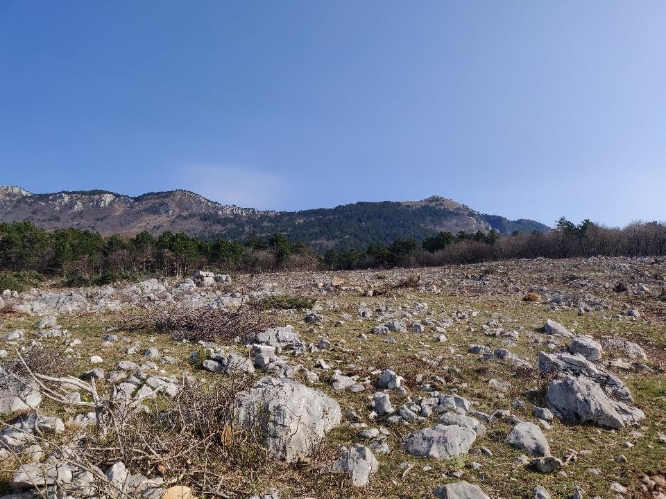 Sečnja na parceli med Gojačami in Kucljem, s katero na 25 hektarih obnavljamo življenjski prostor za hribskega škrjanca, se počasi zaključuje. Konec marca je potekalo le še spravilo posekanega drevja in vej ter mletje v lesne sekance. Izpod grmičevja in drevja so se prikazali nekdanji suhozidi, zgrajeni iz kamenja, ki so ga domačini pred desetletji odstranili, da bi pridobili pašne površine za svoje živali. S sečnjo je območje spet pridobilo nekdanjo podobo.